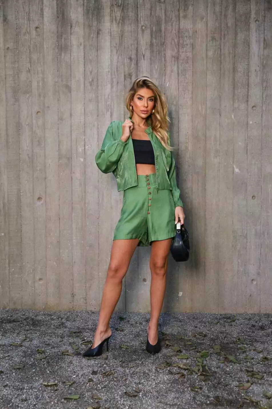 Shorts cintura alta com botões frontais