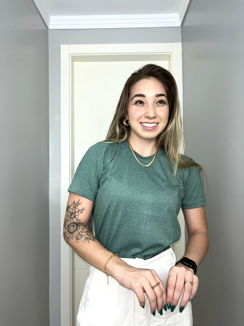 A T-shirt Lisa no tom verde mescla é a peça perfeita para quem ama praticidade sem abrir mão do estilo. Com uma pegada básica e atemporal, ela é fácil de combinar e super confortável para o dia a dia. Ideal para looks casuais ou como base para sobreposições mais ousadas!