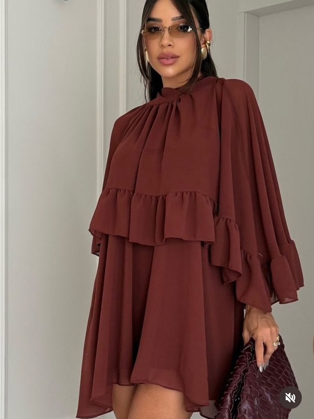 O Vestido Boho Chic Poncho é a escolha perfeita para quem busca um visual sofisticado, leve e cheio de estilo. Com a modelagem poncho, o vestido oferece liberdade de movimento e um toque descontraído, ideal para diversas ocasiões. A cor terra cota traz um charme único, perfeito para qualquer estação!