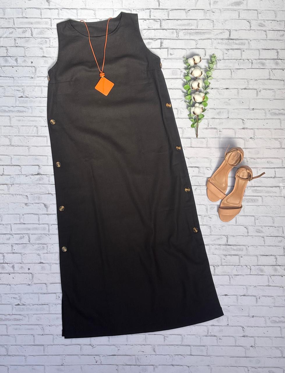 🛍 Garanta já o seu Vestido de Linho Preto com Botões nas Laterais e aposte em um look sofisticado e versátil! ✨